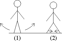 Pritom sa chodidlami (podrazkami topanok) klze po lade. Spozoroval pritom, ze roznozit (dostat sa z polohy 1 do polohy 2) je lahsie ako prinozit. Kedze je to vsak matematik, nevie, preco je to tak. Vysvetlite mu, preco je prinozenie tazsie!