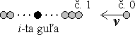 Na biliardovom stole je n guli (pozri obrazok). Okrem i-tej maju vsetky rovnaku hmotnost. Tato je 2-krat taka tazka ako ostatne. Kvalitativne popiste, co sa stane, ak gula c. 0 narazi na gulu c. 1.