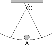 Miska s polomerom krivosti 15 cm j uchytena v bode O tak, ze sa moze volne otacat. Vzdialenost OA = 10 cm. Na miske je volne polozena gulocka. Je tato poloha stabilna (t.j. ked do misky mierne tukneme, vrati sa do povodnej polohy)?