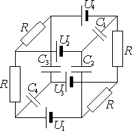 Vypocitajte naboj na kazdom kondenzatore kocky na obrazku.