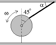 Plny disk s hmotnostou M a polomerom R sa otaca uhlovou rychlostou w. Zvrchu nan nechame pomaly padnut latku o hmotnosti m tak, ze ked sa tato dotyka kotuca, zviera s vodorovnou rovinou uhol a a uhol medzi dotykovym bodom a najvrchnejsim bodom kotuca je 45o.