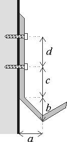Na stene visí vešiak, ktorý je držaný dvoma skrutkami. Akou silou musí v stene držať každá zo skrutiek, ak má vešiak udržať kabát ťažký 30 kg? Dĺžky a, b, c a d poznáme.